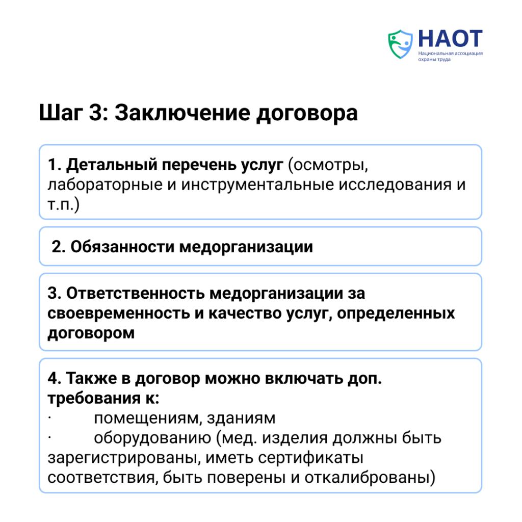 Договор с медорганизацией — ключевой документ. При его заключении, помимо стандартных разделов, убедитесь в наличии в нем существенных условий в отношении медорганизации: