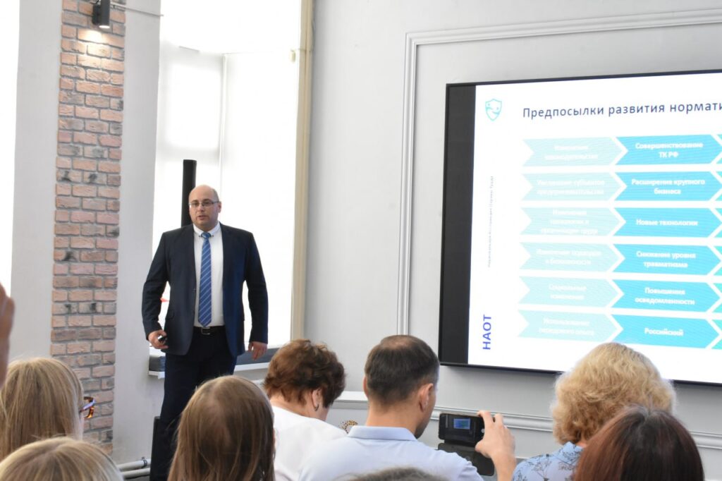 От лица НАОТ в обеих локациях выступил Дмитрий Ульрих, начальник управления нормативно-правового регулирования и экспертной деятельности. Он представил свежие изменения в законодательстве, рассказал об актуальных требованиях к обучению и обеспечению СИЗ и дал практические рекомендации по их внедрению.